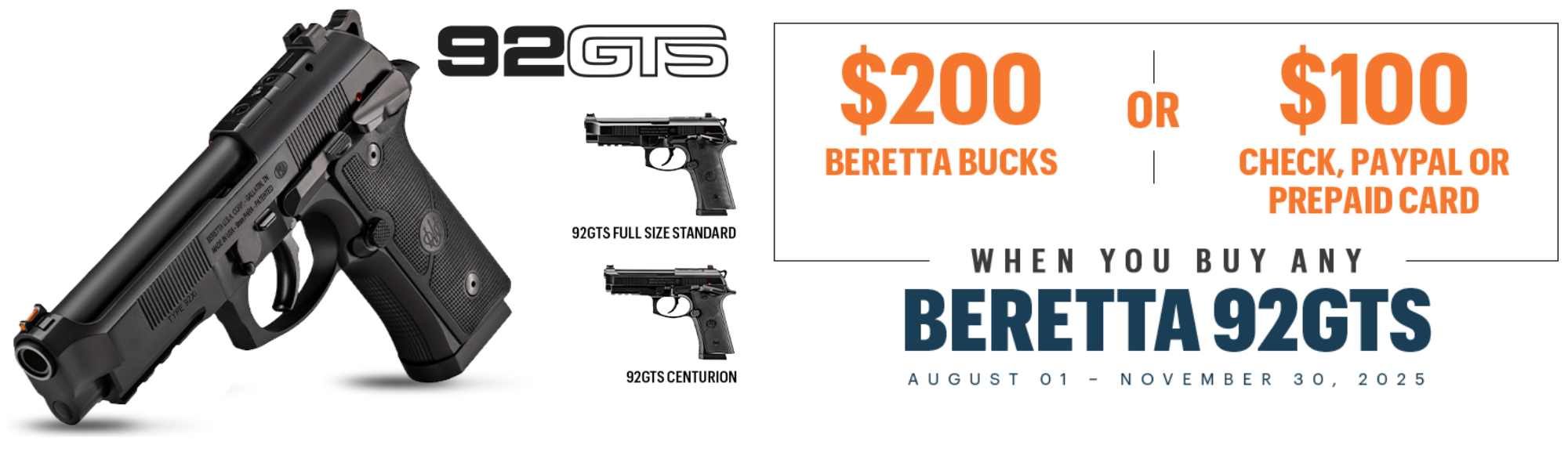 REBATE OPTIONS $100 Check, PayPal or Prepaid card OR $200 Beretta Bucks