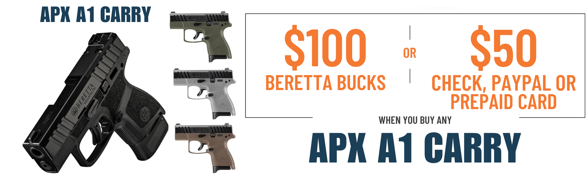 $100 Beretta Bucks or $50 Check/Paypal rebate when you buy any APX A1 Carry.
